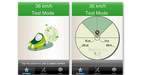 Có thể nói EyeRadars là ứng dụng hữu ích cho xe hơi, hệ thống này cảnh báo những camera bắn tốc độ dựa trên nền iPhone. Cách thức hoạt động tương tự như thiết bị dò tìm radar, EyeRadars sử dụng GPS để xác định vị trí của người lái và camera bắn tốc độ rồi đưa ra cảnh báo cho người lái, iPhone sẽ phát ra âm thanh cảnh báo người lái giảm tốc độ khi đến gần khu vực có thiết bị bắn tốc độ.