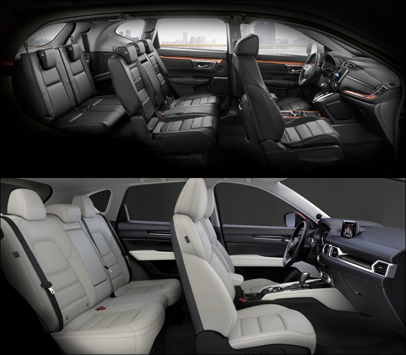 Nội thất của Mazda CX-5 và Honda CR-V đều thể hiện những phong cách rất riêng. Đối với CR-V thiên về sự thanh lịch, thoải mái còn CX-5 lại thiên về sự năng động, tính thể thao và có phần mạnh mẽ hơn: