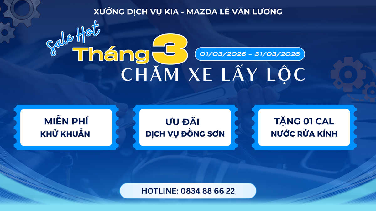 Nhằm đáp ứng nhu cầu đó, Xưởng Dịch vụ Kia Mazda Lê Văn Lương triển khai chương trình ưu đãi bảo dưỡng tháng 3/2026 với nhiều quyền lợi hấp dẫn dành cho khách hàng.