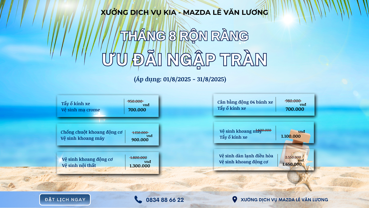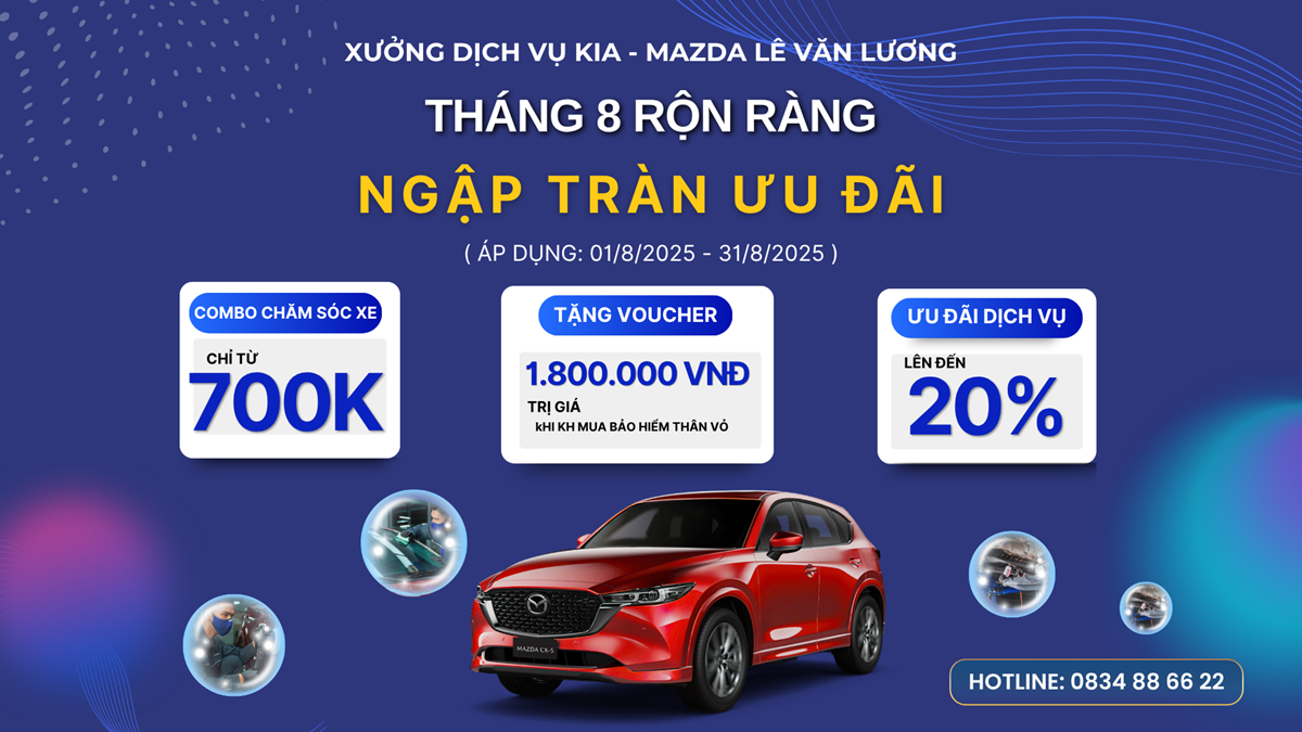 Bạn muốn xe luôn như mới, sáng bóng và bền đẹp? Mazda Lê Văn Lương mang đến ưu đãi làm đẹp xe cực khủng chỉ trong tháng 8: