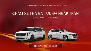Tháng 4 – Xưởng Dịch vụ Kia - Mazda Lê Văn Lương gửi tới Quý khách hàng chương trình KHUYẾN MẠI ĐẶC BIỆT với hàng loạt ưu đãi về đồng sơn, sửa chữa, chăm sóc – làm đẹp xe.